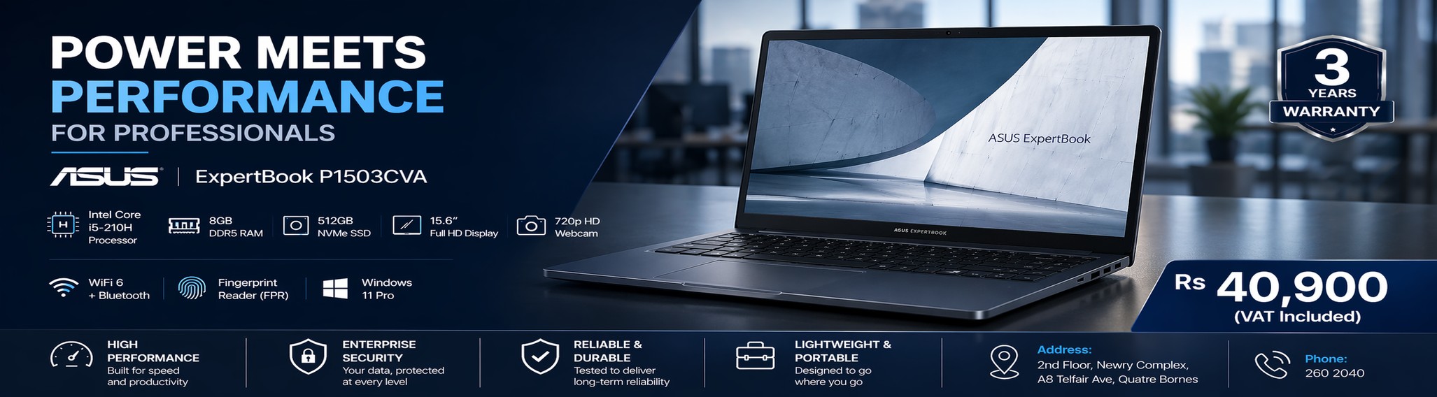 ASUS ExpertBook P1403CVA– Intel Core i5-13420H / 8GB DDR5 / 512GB SSD / 14" FHD / Windows 11 Pro / 3 Years Warranty